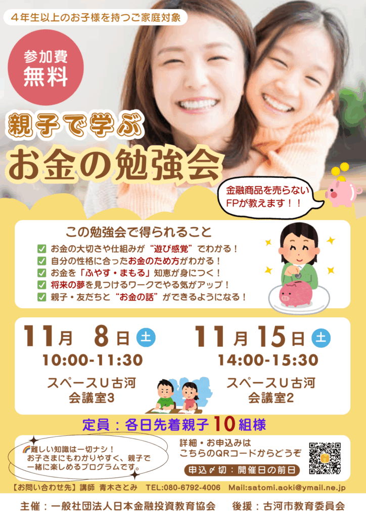 茨城県古河市教育委員会より後援を受けました~青木さとみ講師「親子で学ぶ お金の勉強会」~