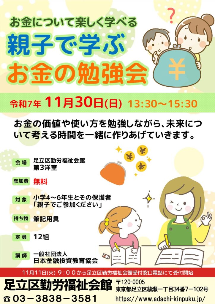 11月30日開催 親子で学ぶ お金の勉強会のご案内