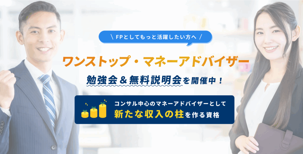 「ワンストップマネーアドバイザーコース」は、個人向けのマネー相談から法人向けの財務コンサルティングまで対応できる専門家を育成する講座です。